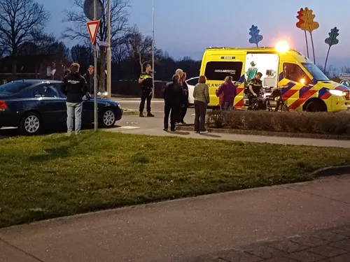 De vrouw is ter plekke gecontroleerd door ambulancepersoneel en vervolgens per ambulance naar het ziekenhuis vervoerd. Mogelijk is een voorrangsfout de oorzaak van het ongeval.