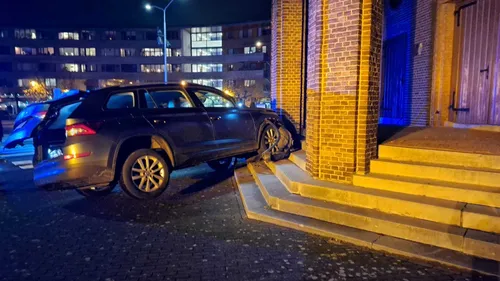 VENLO – Dinsdagavond rond 22:15 uur verloor een automobilist de controle op de rotonde aan de Straelseweg. De auto kwam uiteindelijk tot stilstand op de trappen van de Heilig Hart Kerk.