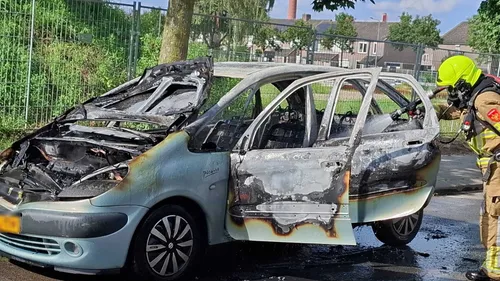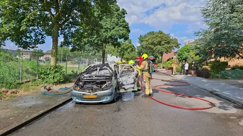 Ter plaatse is een auto tijdens het rijden in brand gevlogen.