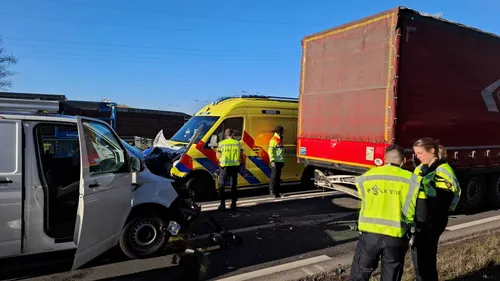 Ter plaatse bleek een bestelbusje achterop een vrachtwagen te zijn gereden. De oorzaak van de aanrijding is nog onbekend.