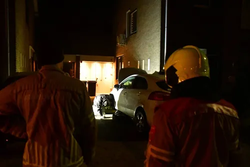 Bij aankomst bleek een kat vast te zitten in de ophanging van een auto. Een buurvrouw had alarm geslagen nadat zij geluiden uit de auto hoorde komen.