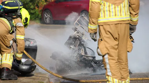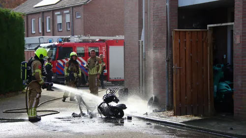 Een brommer heeft vlam gevat, bij aankomst van de brandweer stond de tweewieler volledig in lichterlaaie. De brandweer had de vlammen snel geblust, desondanks is de brommer wel volledig uitgebrand.