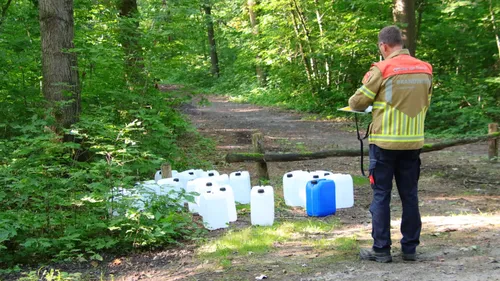 In bosgebied Het Zwarte Water zijn langs de weg bij twee verschillende inhammen in totaal zo'n 40 jerrycans met vloeistof gedumpt, zeker 1 jerrycan lekt.