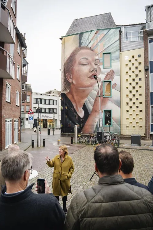 Kunstenaar Michel Alders werkte de afgelopen weken hard om het schilderij op de zijgevel van het voormalige Hotel Puur aan te brengen. Hij deed dit onder leiding van Venlonaar Vincent Huibers, die meerdere murals maakte in de gemeente. “Het is een blijvende herinnering voor de stad aan een van haar meest bekende kunstenaars”, zei wethouder Marij Pollux tijdens de onthulling.