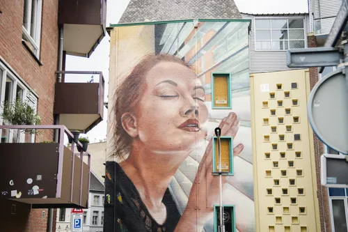 Kunstenaar Evert Thielen onthulde maandagmiddag 21 oktober in de Lohofstraat in de binnenstad van Venlo een enorme muurschildering. Het is een reproductie van zijn kunstwerk ‘Groot Verlangen’.